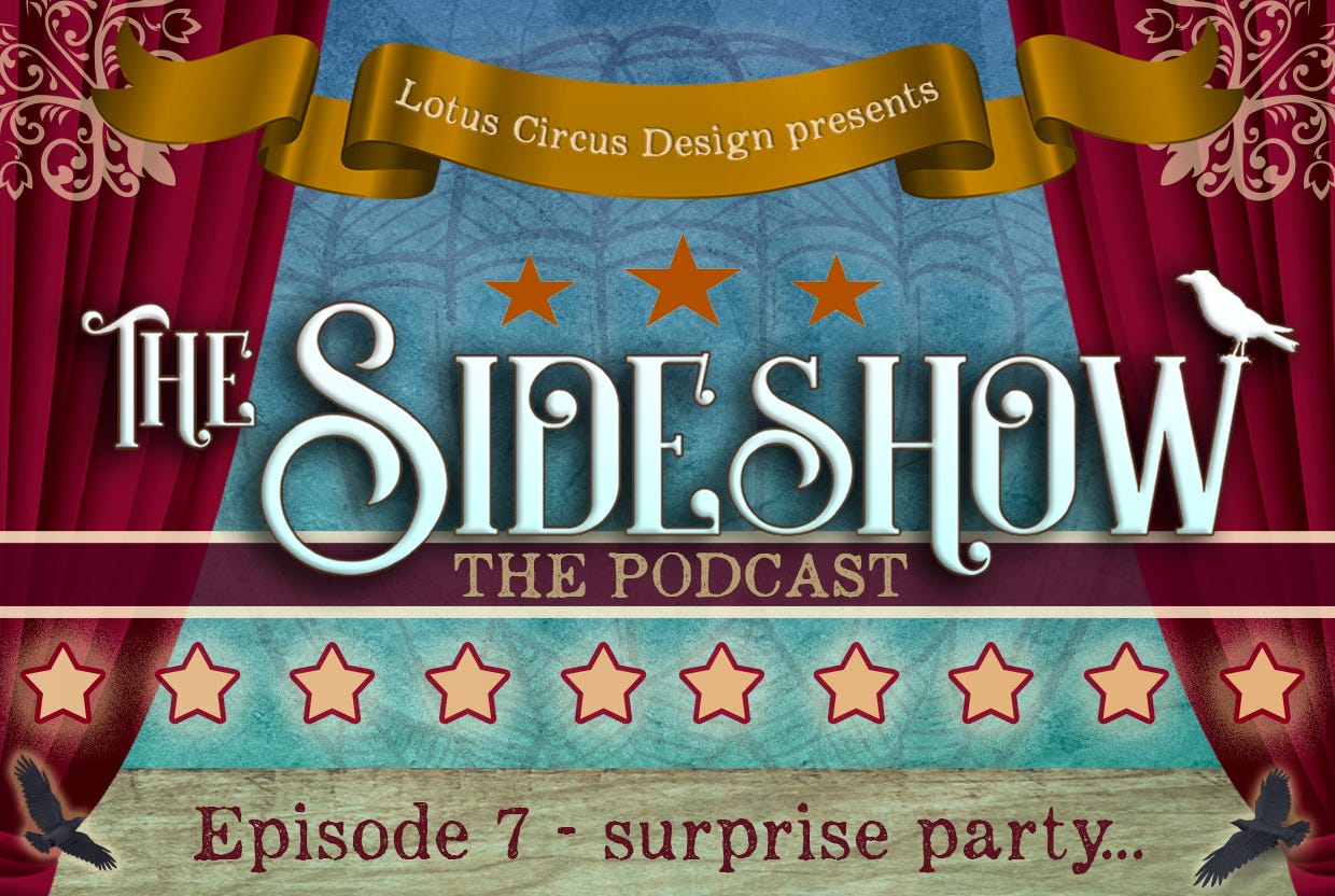 The Sideshow Podcastsurprise party...21×0:00Current time: 0:00 / Total time: -0:50-0:50Audio playback is not supported on your browser. Please upgrade.surprise party...Read Aloud from The Red Suitcase Becky WetheringtonNov 29, 20232ShareTranscriptRead aloud of “surprise party…” from The Red Suitcase.Discussion about this episodeCommentsRestacksThe Sideshow PodcastLotus Circus Design presents The Sideshow Podcast, a place for vocalizing things a bit off-kilter.Lotus Circus Design presents The Sideshow Podcast, a place for vocalizing things a bit off-kilter.SubscribeListen onSubstack AppRSS FeedAppears in episodeBecky WetheringtonRecent Episodes"i shouldn't be here for this."Oct 16, 2023 • Becky Wetheringtonon the black futon.Oct 11, 2023 • Becky Wetheringtonface.Oct 8, 2023 • Becky WetheringtonICQOct 5, 2023 • Becky Wetheringtonbehave.Oct 3, 2023 • Becky WetheringtonStep Right UpOct 2, 2023 • Becky Wetherington